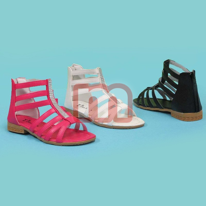 Modische Mädchen Frühling Sommer Sandalen Schuhe mit Riemchen und dezentem Absatz. Enthalten ist das abgebildete Modell. Die Größen und Farben sind gemischt. Dieses Modell stammt aus der aktuellen Kollektion. Original verpackte Neuware. 1VE: 24 Paar Farben: gemischt Größen: 31-36 (gemischt) Artikel-Nr.: 03_8941-2 Preis je VE: 124,80 EUR Preis einzeln: 5,20 EUR