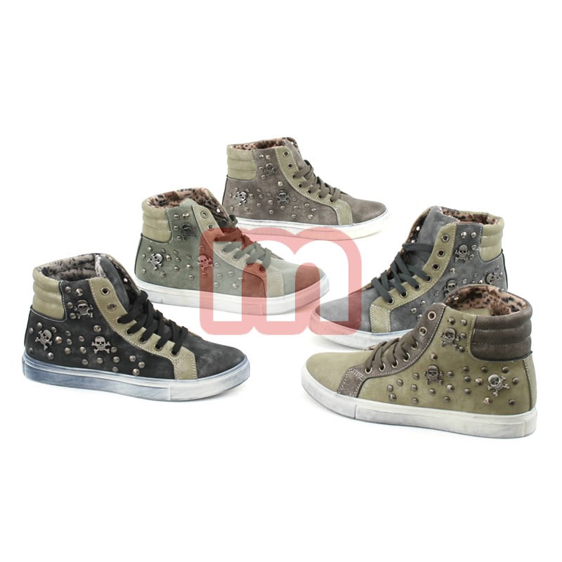 Modische Damen Herbst Winter Boots Schuhe in Wildlederoptik (Imitat), jeweils ausgestattet mit hohem Schaft und Schnürbändern, gemischt in den Größen 36-41. Dieses Modell stammt aus der aktuellen Kollektion. Original verpackte Neuware. 1VE: 12 Paar Farbe: Nero, Verde, Grigio, Oro, Tortora (wählbar) Größe: 36-41 (gemischt) Artikel-Nr.: 01_28087 Preis je VE (12 Paar): 126,- EUR Preis je Paar: 10,50 EUR