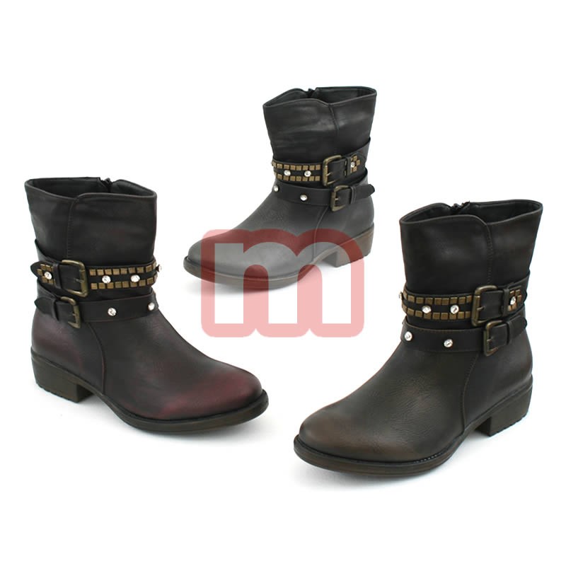 Modische Damen Herbst Winter Boots Schuhe in Lederoptik (Imitat), jeweils ausgestattet mit einer stabilen Sohle, Reißverschluss sowie Applikationen, gemischt in den Größen 36-41. Die Farbe können Sie selbst wählen. Dieses Modell stammt aus der aktuellen Kollektion. Original verpackte Neuware. 1VE: 12 Paar Farbe: Schwarz, Oro, Rosso (wählbar) Größe: 36-41 (gemischt) Artikel-Nr.: 01_39027 Preis je VE (12 Paar): 215,40 EUR Preis je Paar: 17,95 EUR