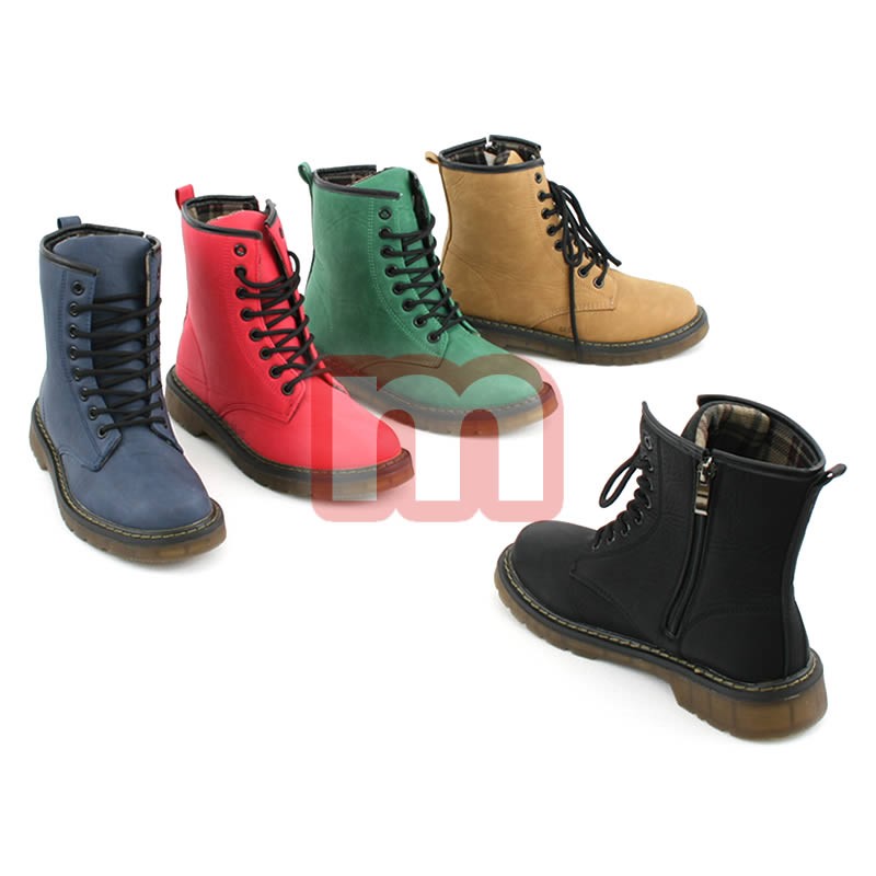 Modische Damen Herbst Winter Boots Schuhe in Lederoptik (Imitat), jeweils ausgestattet mit einer stabilen Sohle, Reißverschluss sowie Schnürbändern, gemischt in den Größen 36-41. Die Farbe können Sie selbst wählen. Dieses Modell stammt aus der aktuellen Kollektion. Original verpackte Neuware. 1VE: 12 Paar Farbe: Schwarz, Camel, Blau, Grün und Rot (wählbar) Größe: 36-41 (gemischt) Artikel-Nr.: 01_005 Preis je VE (12 Paar): 119,40 EUR Preis je Paar: 9,95 EUR
