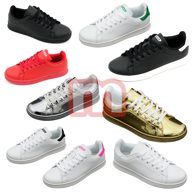 Modische Herren Freizeit Schuhe Sneaker, jeweils ausgestattet mit solider Sohle und Schnürbändern, gemischt in verschiedenen Größen. Die Farbe können Sie wählen. Dieses Modell stammt aus der aktuellen Kollektion. Original verpackte Neuware. 1VE: 12 Paar Farben: weiß-grün, weiß-pink, weiß-schwarz, silber, gold, rot, schwarz-weiß, schwarz, weiß (wählbar) Größe: 40-45 (gemischt) Artikel-Nr.: 02_851127-M Preis je VE: 174,00 EUR Preis einzeln: 14,50 EUR