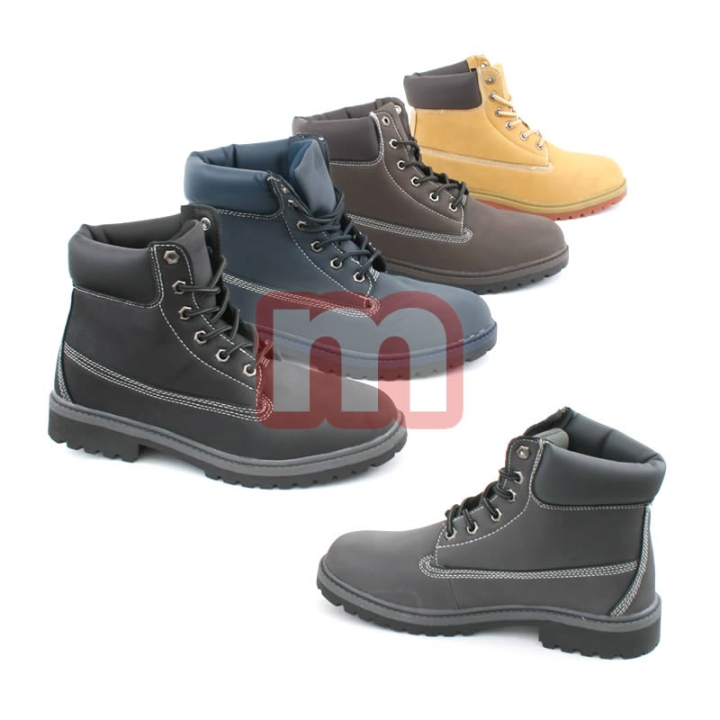 Schicke Herren Outdoor Trekking Winter Boots Schnür Schuhe in Wildlederoptik (Imitat), jeweils ausgestattet mit einer stabilen Sohle mit Profil, stabilem Schaft für sicheren Sitz des Fußes sowie stabilen Schnürbändern. Enthalten sind die Größen 40-46 (gemischt), die Farbe ist wählbar. Dieses Modell stammt aus der aktuellen Kollektion. Original verpackte Neuware. 1VE: 12 Paar Farben: Yellow, Schwarz, Grau, Blau, Braun (wählbar) Größe: 40-46 (gemischt) Artikel-Nr.: 02_x-27 Preis je VE (12 Paar): 142,80 EUR Preis je Paar: 11,90 EUR