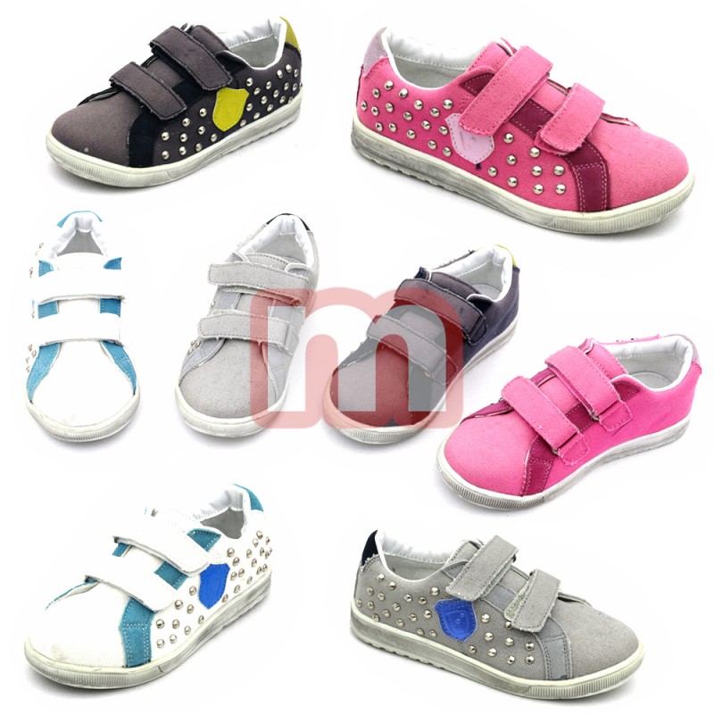 Trendige Kinder Mädchen Jungen Sport Freizeit Schuhe Sneaker, jeweils ausgestattet mit solider Sohle und diversene Applikationen und Details. Enthalten sind verschiedene Modelle, gemischt in verschiedenen Farben, Musterungen und Größen (siehe Beispielbild). Die Mischung einer Verpackungseinheit erfolgt nach dem Zufallsprinzip. Alle Modelle stammen aus unserer aktuellen Kollektion. Original verpackte Neuware. 1VE: 96 Paar Farbe: z.b. pink, schwarz, weiß, grau, u.ä. (gemischt) Größe: 25-35 (gemischt) Artikel-Nr.: 03_sportschuhe Preis je VE : 379,20 EUR Preis einzeln: 3,95 EUR