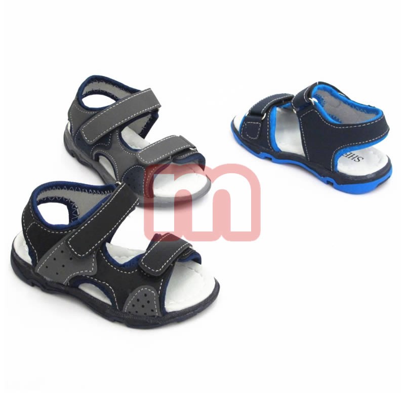 Modische Kinder Mädchen Jungen Sommer Slipper Sandalen Schuhe mit Klettverschluss. Enthalten ist das abgebildete Modell, gemischt in verschiedenen Farben. Die Größen können Sie selbst wählen. Dieses Modell stammt aus der aktuellen Kollektion. Original verpackte Neuware. 1VE: 24 Paar Farben: schwarz, grau, blau (gemischt) Größen: 20-25, 25-30, 31-36 (wählbar) Artikel-Nr.: 03_b-1-2-3 Preis je VE: 132,00 EUR Preis einzeln: 5,50 EUR