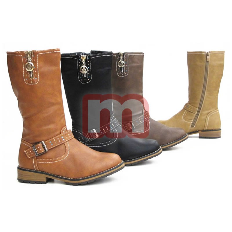 Modische Kinder Mädchen Stiefel Schuhe Boots, jeweils ausgestattet mit einer soliden Sohle und Musterung. Enthalten ist das abgebildete Modell, gemischt in verschieden Größen. Die Farbe können Sie selbst wählen Dieses Modell stammt aus der aktuellen Kollektion. Original verpackte Neuware. 1VE: 12 Paar Farbe: schwarz, camel, braun, khaki (wählbar) Größe: 33-38 (gemischt) Artikel-Nr.: 03_808-5b Preis je VE : 174,00 EUR Preis einzeln: 14,50 EUR