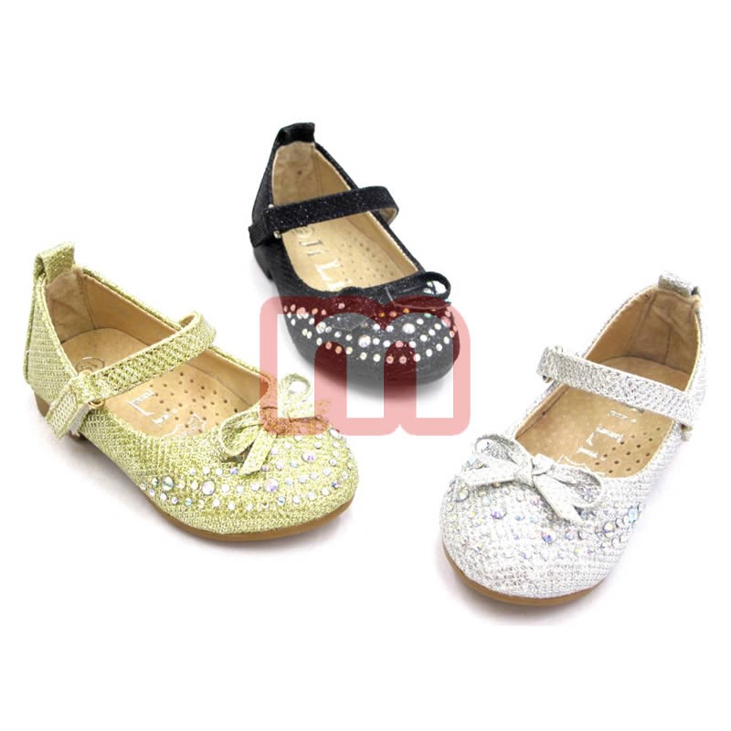 Schicke Mädchen Kinder Kids Ballerinas Ballerina Halbschuhe Slipper Sommer Schuhe, ausgestattet mit Applikationen. Enthalten ist das abgebildete Modell, gemischt in den Größen 19-24 und gemischt in verschiedenen Farben. Dieses Modell stammt aus der aktuellen Kollektion. Original verpackte Neuware. 1VE: 24 Paar Farben: Schwarz, Silber, Gold (gemischt) Größe: 19-24 (gemischt) Artikel-Nr.: 03_F20-2 Preis je VE : 132,00 EUR Preis einzeln: 5,50 EUR