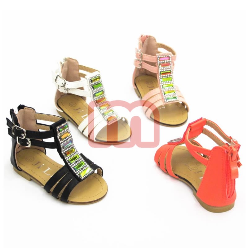 Modische Mädchen Sandalen Sommer Schuhe mit Verzierungen. Enthalten ist das abgebildete Modell, gemischt in verschiedenen Größen. Die Farbe können Sie selbst wählen. Dieses Modell stammt aus der aktuellen Kollektion. Original verpackte Neuware. 1VE: 30 Paar Farben: schwarz, weiß, pink, rosé (wählbar) Größen: 19-24 (gemischt) Artikel-Nr.: 03_L-207-2 Preis je VE: 225,00 EUR Preis einzeln: 7,50 EUR