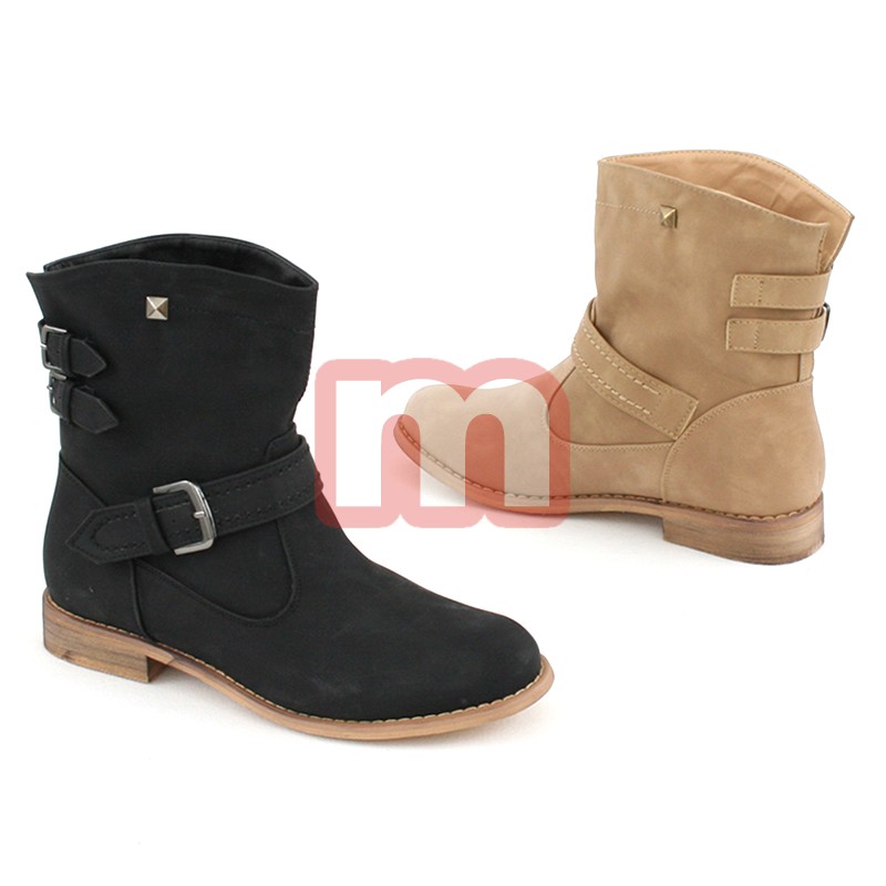 Modische Damen Sommer Stiefel Schuhe Boots in Lederoptik (Imitat), jeweils ausgestattet mit einer stabilen Sohle, Schnallen, Applikationen und Reißverschluss. Dieses Modell stammt aus der aktuellen Kollektion. Original verpackte Neuware. 1VE: 12 Paar Farben: Khaki oder Schwarz (wählbar) Größe: 36-41 (gemischt) Artikel-Nr.: 01_oy-02 Preis je VE (12 Paar): 131,40 EUR Preis je Paar: 10,95 EUR