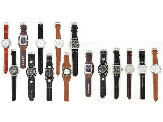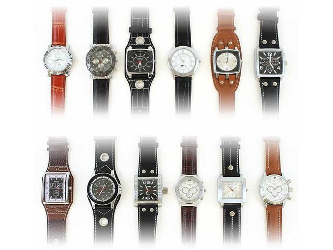 Gemischter Posten von 50 Stck. edlen Herren Uhren Watches Designerlook mit modischem Lederimitatband für 149,- Euro Großer Posten von edlen & trendigen Herren Armbanduhren mit Lederimitatband. Alle Modelle mit hochwertigem Quarz Uhrenlaufwerk aus der aktuellen Kollektion. Wir erhalten jede Woche neue Modelle, welche wir für diesen Posten verwenden. Sie erhalten immer aktuelle Uhren aus der laufenden Kollektion. 1VE: 50 Uhren (verschiedene Modelle) Farben & Design: Siehe Bilder Preis pro VE: 149,- Euro / Preis pro Uhr 2,98 Euro
